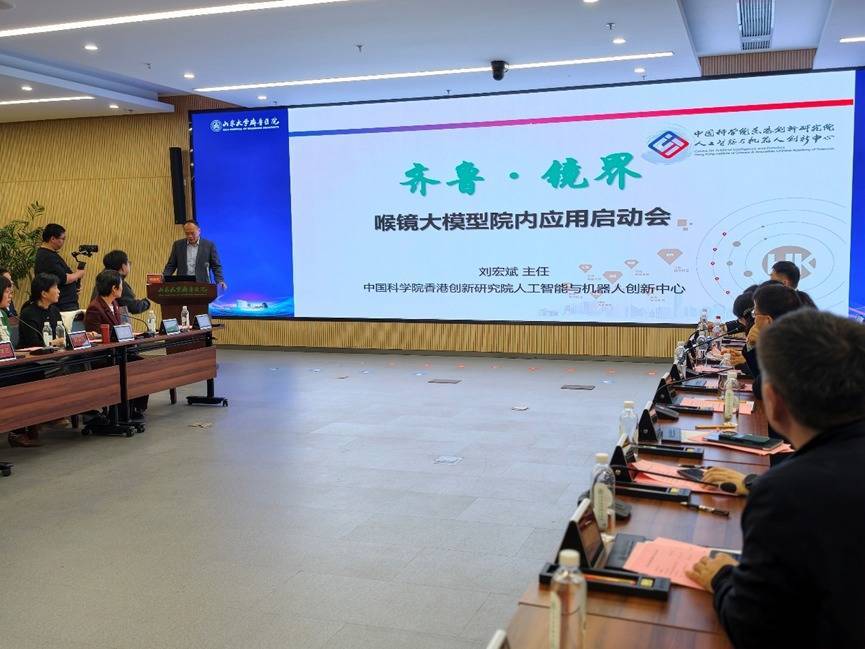 3月21日,齐鲁医院举办“齐鲁·镜界”喉镜大模型院内应用启动会。该模型由齐鲁医院耳鼻咽喉科与中国科学院香港创新研究院人工智能与机器人创新中心联合研发,是山东省重点研发(重大创新工程)资助项目,此次落地医院开展试点应用,旨在精准攻克咽喉部病变诊断中的难点与痛点,为耳鼻咽喉科精准诊疗注入智能新动能。齐鲁医院网络信息中心主任王清亮主持启动会,耳鼻咽喉科主任雷大鹏、中国科学院香港创新研究院人工智能与机器人创新中心主任刘宏斌,研发团队和相关专业专家出席会议。